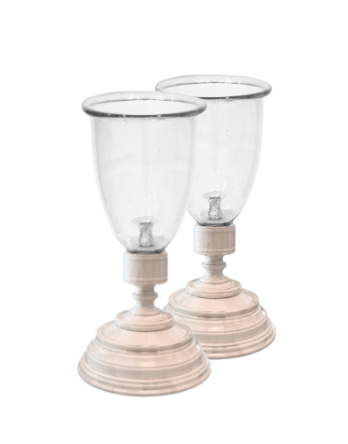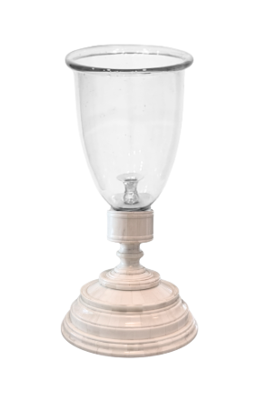Inlayed bone hurricane base with glass hurricane. Bronze candle holder.